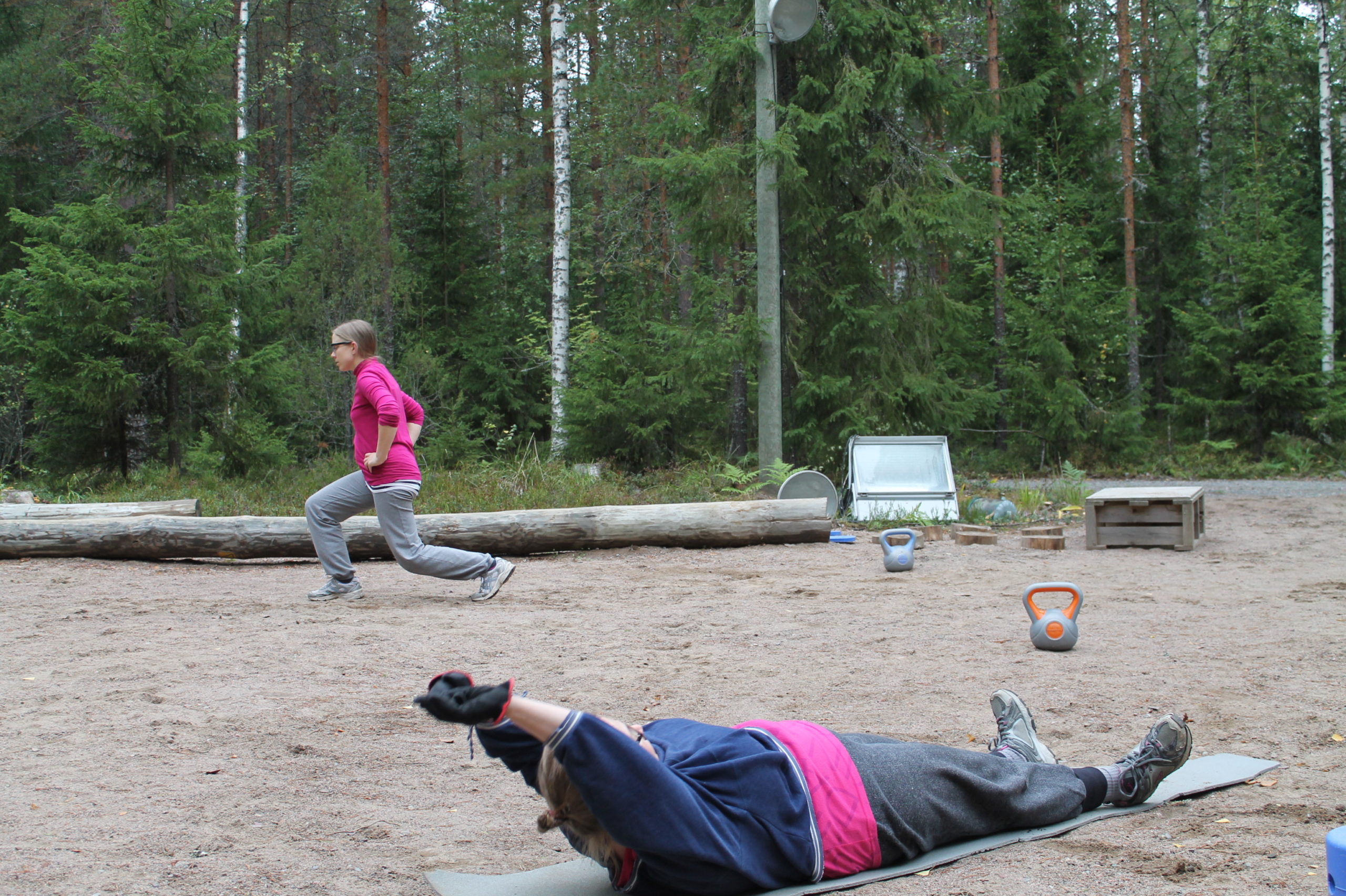 Alla kuvia treeniestä ja metsäkuntosalista sekä luonnollisesti hyvässä kunnossa olevista treenaajista. =)